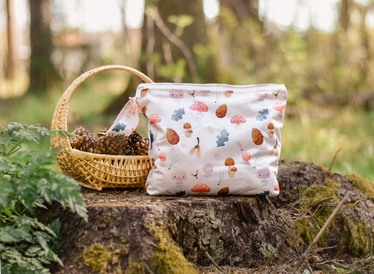 Wetbags made from recycled plastic bottles with the same beautiful prints as our diaper covers.